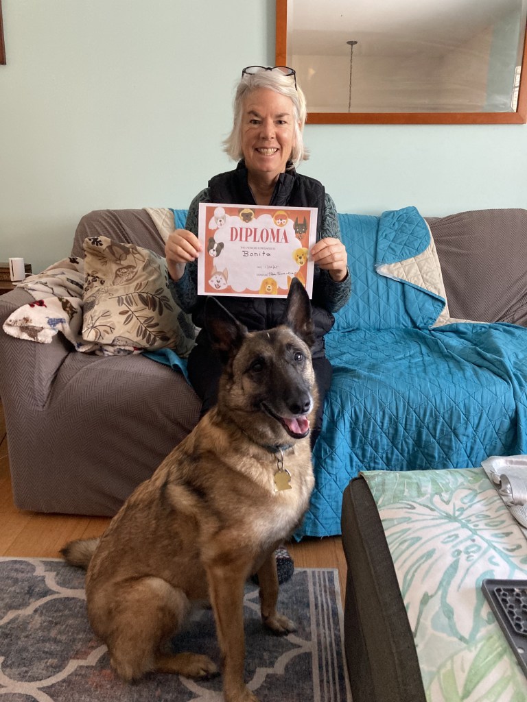 “I can’t recommend highly enough Elaine Ferrera from Rosie’s Canine Physical Therapy! Bo graduated graduated from her 6 week in-home program today, and we’ll be moving to a monthly maintenance program. The in-home treatments made a world of difference. Elaine is knowledgeable, kind, and Bo loves her!”